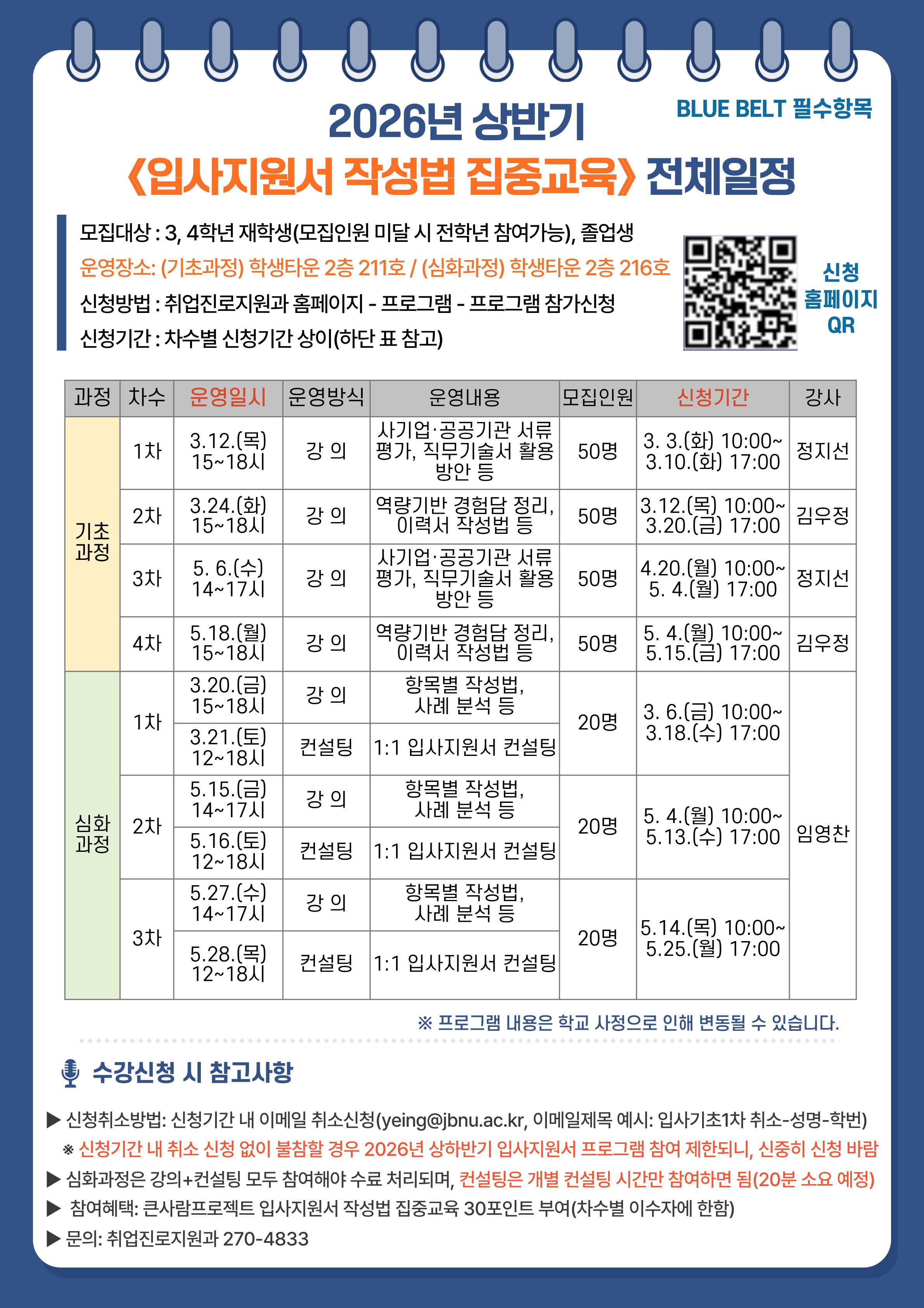 [BLUE BELT 필수항목] 2026년 상반기 입사지원서 작성법 집중교육 일정 및 신청 안내